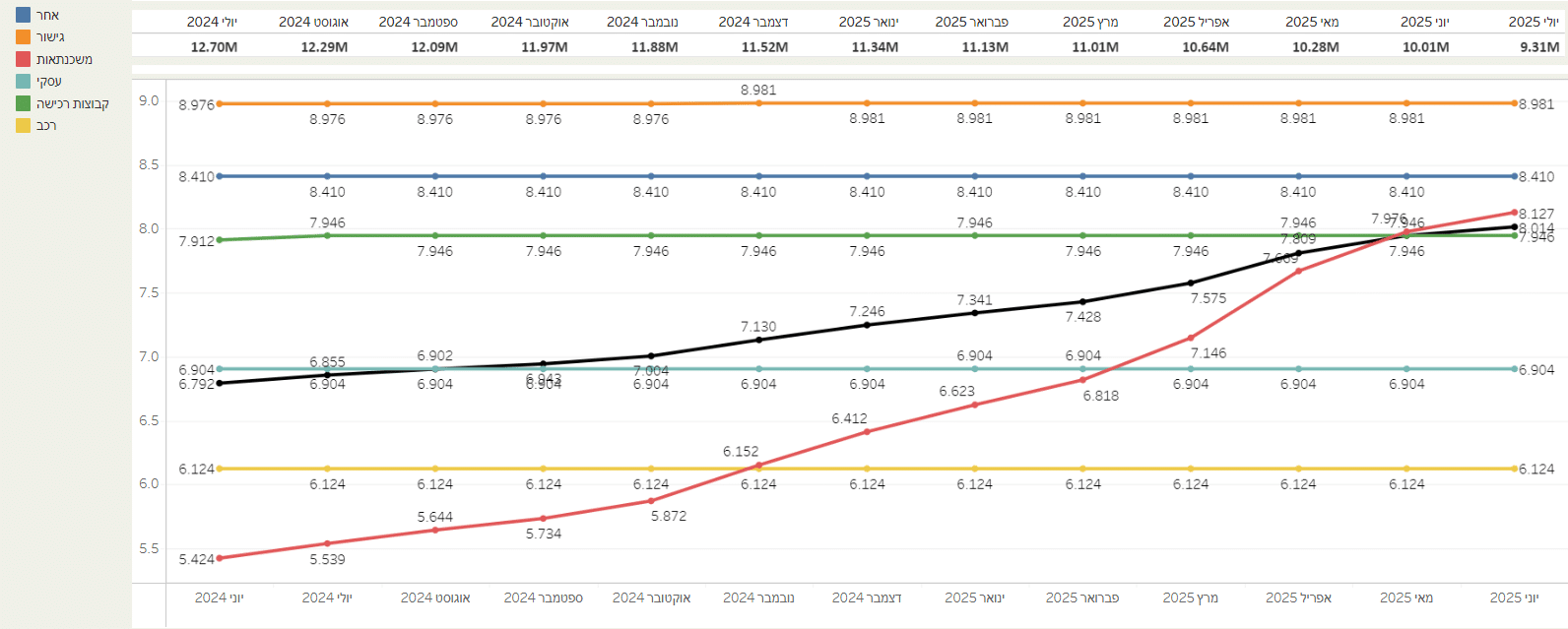 עוד יובהר כי הקו השחור מציג ממוצע משוקלל של שיעורי הריבית במערכת.